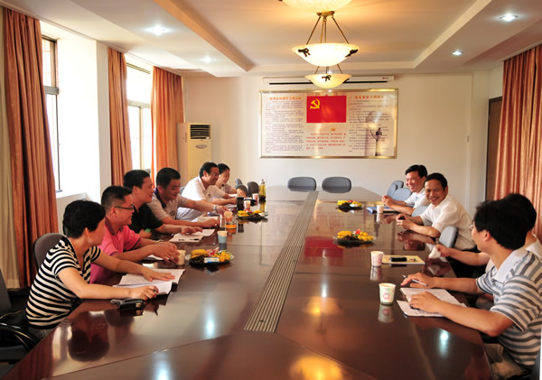杨运齐校长首先代表学校对福建三明林业学校领导、老师的到来表示欢迎。然后与会双方就申报国家改革发展示范校过程中的相关话题进行了深入的交流。作为首批国家改革发展示范校的项目学校,我校与会领导、中层干部详细介绍了申报方面的工作经验。杨运齐校长提出了从顶层设计入手,以就业为导向,抓一条“校企合作”主线,改革创新贯穿全局的创建思路;接着,谢炜洪主任将创建国家改革发展示范校的《建设实施方案》和《建设任务书》的内容分解,将教育部下达的七项任务归纳为三类进行了详细的介绍;魏丽燕科长就教务行政方面的创建工作介绍了我校的工作经验。福建三明林业学校对我校建立的由企业参与的多元化评价学生的体系等“先试先行”的举措表示了极大的赞许。最后,杨运齐校长表示,我校作为首批立项的国家改革发展示范项目校,很多的工作都处于不断的总结和改进的过程中,作为“先试先行”者,希望和兄弟院校多交流、多探讨,互相吸取经验教训,共同发展壮大,为区域经济建设服务。