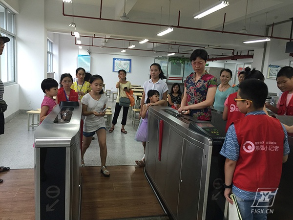 活动中,在听名师讲地铁知识时,小记者们都格外认真,还不时地在笔记本上记录。他们不仅积极回答老师的提问,而且还经常举手向现场的老师询问与地铁相关的知识。在老师的组织下,小记者们还现场体验了地铁乘客、地铁售票员等角色,开始了福州地铁一号线的全真模拟之旅。在记者对话名师环节中,我校电气与城轨专业教学部林曦主任简要介绍了学校的基本情况,并以今年7月16日省委书记尤权莅临我校调研为例,向大、小记者们解读了当前国家和政府部门职业教育的相关政策,以及职业教育的重要性。