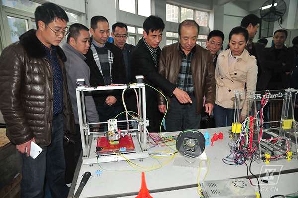客人参观机械(金山)实训基地三D打印设备