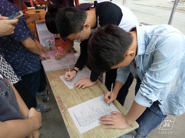 近日,有同学通过百度贴吧等互联网途径反应,部分同学就餐后随手将餐盘和食物残渣留在餐桌上。值班老师在食堂值班过程中也发现了同学们就餐过程中存在的一些不文明行为。为了进一步让同学们养成文明用餐的习惯,营造干净舒适的用餐环境,校团委与汽车专业教学部生活部的两委干部们于5月10日-12日共同组织开展了以“文明就餐,你我共建”为主题的宣传活动,得到了广大师生的支持和积极响应。他们纷纷驻足,写下对食堂管理的建议,认真填写了关于食堂的问卷调查表,阅读了文明就餐的倡议书。