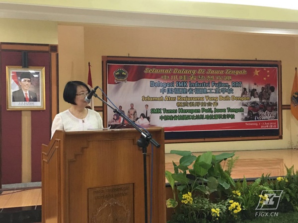 6月2日中爪哇省教育厅举行欢迎会,省教育厅长代表省长致欢迎词,并期待两校交流合作成功!陈礁团长发表了讲话。
