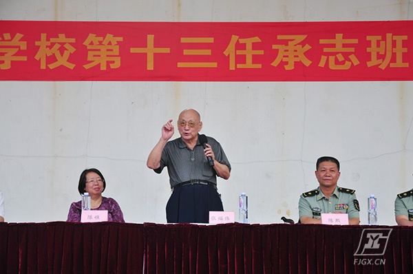 大会上,干休所陈熙所长对我校“承志班”给予了高度评价,并希望新的“承志班” 能继续传承革命先烈的精神,为良好校风、学风、班风的建设起到积极推动作用。张福伟老首长希望全校班级都能成为“承志班”,希望同学们进一步坚定理想信念,热爱和平、祖国、军队,要孝敬所有的老人。张老戎马一生,不忘战友,用自己无私奉献的高尚品格,深刻地影响并教育了一批又一批师生。