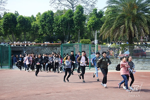 在演练开始前,学生科科长李旭东老师介绍了逃生的注意事项和方法。然后全部师生回到教室待命,听到警报声响起, 3000多名学生在班主任的有序引导下,捂住口鼻,弯着身体快速有序地按照逃生路线撤离到学校操场。演练结束后,李旭东科长点出了演练活动的不足之处,如个别同学不按照事先安排的路线逃离,有的同学还在开玩笑,态度不够严肃。他告诫同学们要增强消防逃生意识,遇到突发事件,要沉着应对,安全逃生。