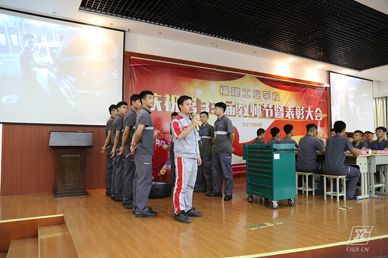 出席本次大会的有全体校领导、各部门中层干部及全体老师、部分学生代表和福州中升丰田技术部陈志龙经理,樊帆老师主持。