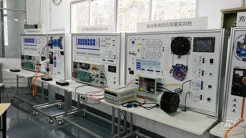 华体会在线平台新能源汽车实训室涵理论学习区、整车实训区和功能检测区。理论学习区为理实一体化项目教学的交互学习理论提升区域,配备有信息化交互学习设备和学生讨论自主学习设备等;整车实训区有北汽EV160纯电动汽车和东南V3纯电动汽车,可展开整车结构认知、部件拆装、故障诊断等教学;功能检测区对新能源汽车的分部件功能进行学习和分析,包括高压安全模拟测量实训台、BMS锂电池管理系统实训台、驱动系统综合测量实训台、电池组实物展示台、高压器件展示箱、电机解剖模型等共22台套,满足新能源汽车电池、电机、电控三大电的理论和实践的教学需求。