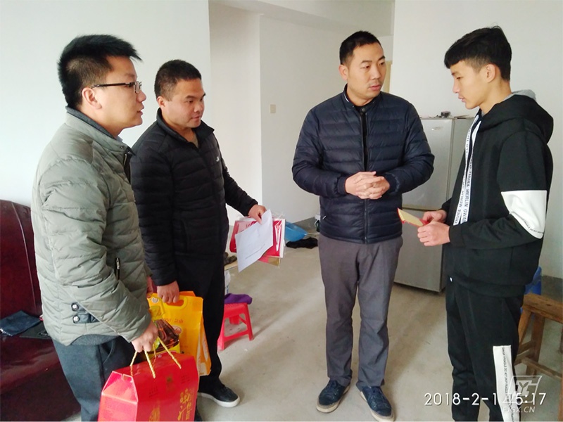 走访过程中,每到一户,走访组一行在为学生及家长送去慰问物资的同时都与学生家长进行了深切地交谈,详细了解了贫困学生的家庭情况、生活状况、住房条件、经济来源等,询问了贫困学生在家的各种表现。走访小组也向学生家长通报了学生在校学习、接受资助等各方面情况,并耐心地向学生家长介绍了国家的免学费、助学金、学校的奖学金、勤工助学等各项贫困生资助帮扶政策,真诚地鼓励贫困学生要在逆境中奋进,要相信困难是暂时的,要把贫穷看作磨砺人生的宝贵财富。