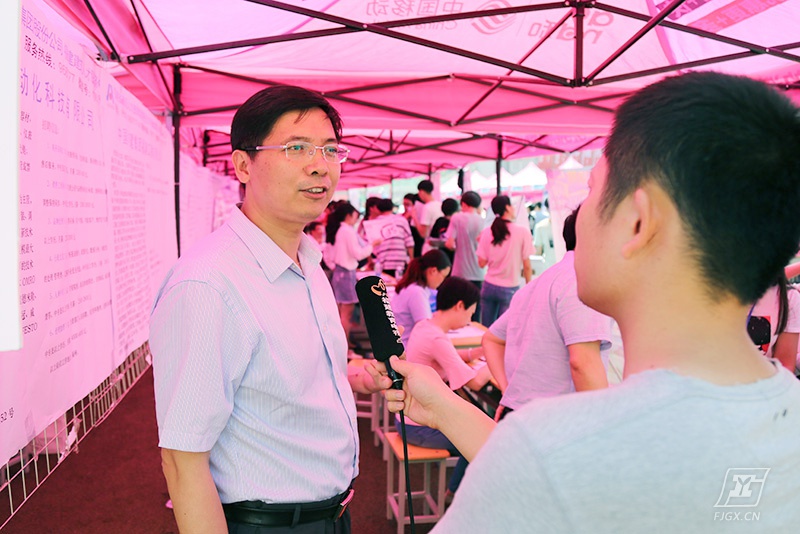 学校对此次招聘会高度重视,成立了工作领导小组,召开专题筹备会,各部门精心准备,确保各项工作稳定有序进行。招聘会期间,林俊标校长、余梅英副校长亲临会场指挥并与用人单位和学生交流。各专业教学部副主任及16级班主任都到场组织学生有序应聘。福建省教育电视台记者到现场采访了林俊标校长、部分企业代表及应聘学生。