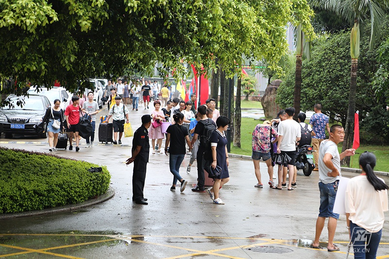 虽然天公不作美,不时地飘着小雨,但近2千名新生陆陆续续有序到达学校报到。校园里四处萦绕着悠扬的音乐与这淅淅沥沥的小雨相间,为昨日还在饱受酷热的人们带来了阵阵凉意。