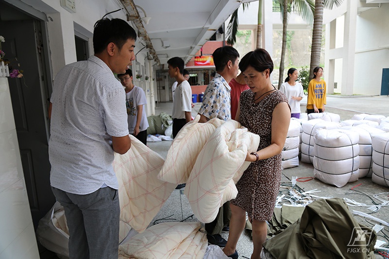 新生报到前夕,林俊标校长带队检查校园设施,仔细检查赠送给每一位新生的床上用品,力保每一位学生住得舒心,用得放心。