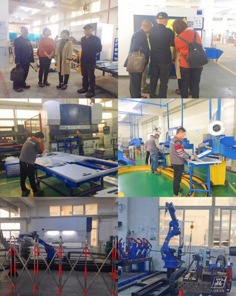在人力资源部陈彬辉经理和生产部黄保彬经理带领下,参观了钣金车间、焊接车间、喷涂车间、装配车间等等,了解公司的整个生产过程以及公司技术革新改造情况,钣金、折弯和焊接工序采用了工业机器人生产。