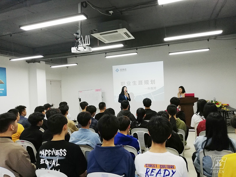 在人力资源部缪丹的带领下,我们来到了会议室。在观看完众事达公司的宣传视频短片后,由众事达公司人力资源部经理朱春芳经理给我们进行“职业生涯规划”的培训。在培训中,朱经理结合自身职业发展经理,告诉当前电商企业的人才需求方向;作为电商专业的毕业生,我们应该具备哪些能力,以及未来的职业发展阶段和方向。