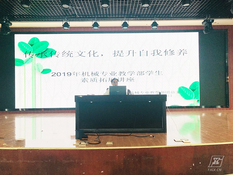 为了进一步在青年学生中弘扬中华优秀传统文化,加强社会主义核心价值观教育,增强文化自信,4月25日下午,机械专业教学部团总支邀请福州晋安区戏剧家协会主席、晋安区闽剧团团长欧成斌老师在本校综合楼12楼开展“非物质文化遗产(闽剧)发展与传承”主题讲座 。
