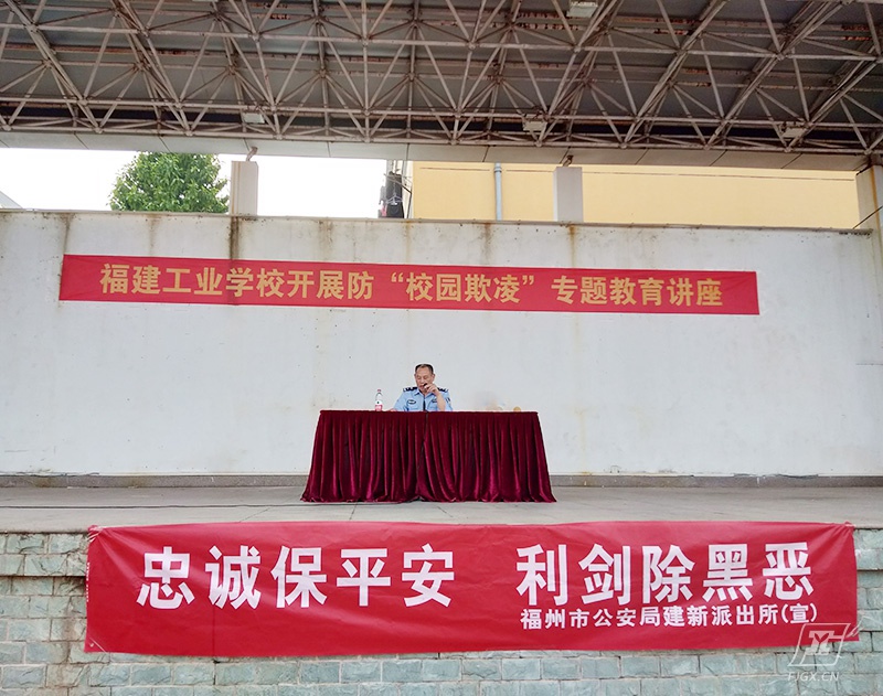 为强化学生法治意识,严肃校规校纪,推动校园欺凌防治各项措施落到实处,努力把校园建设成为最安全、最阳光的家园。于2019年4月29日学生科特邀请了建新派出所林健队长为全校同学们开展“忠诚保平安 利剑除黑恶”专题讲座。