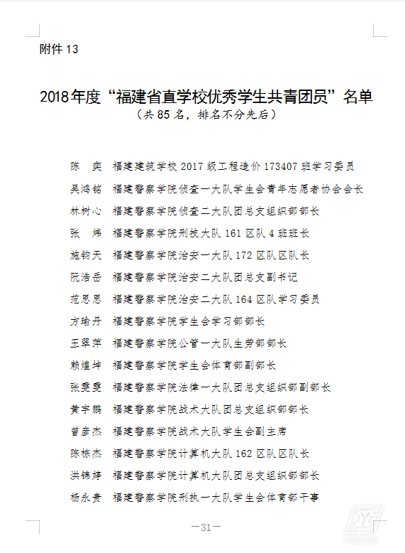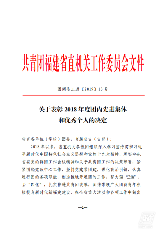 近日,从省直机关团工委获悉,经组织推荐、评委会审核评定等程序,共青团福建省直机关工作委员会发布了《关于表彰2018年度团内先进集体和优秀个人的决定》(团闽委工通〔2019〕13号),我校18位师生获得表彰。