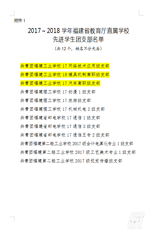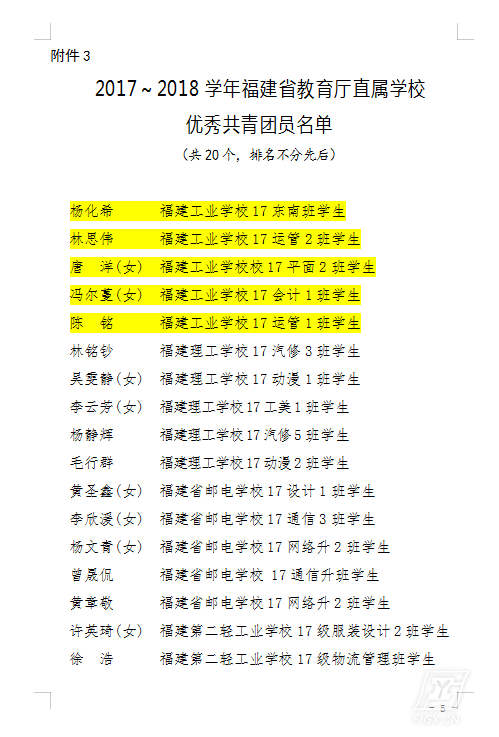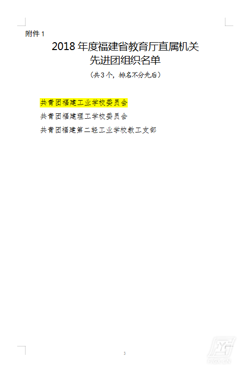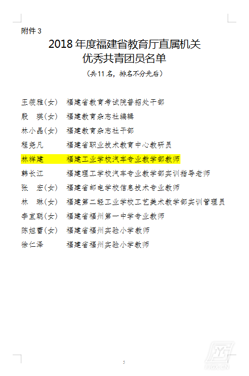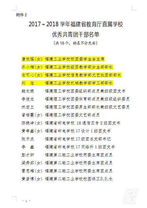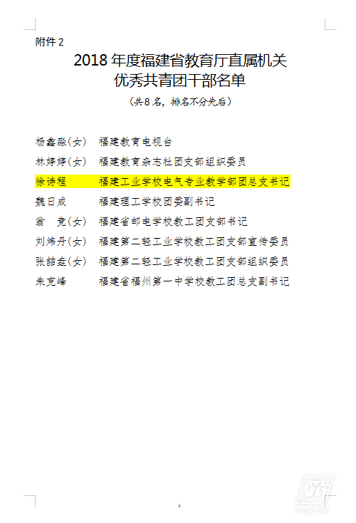 从福建教育厅获悉,经组织推荐、评委会审核评定等程序,福建省教育厅发布了《关于表彰2018年度福建省教育厅直属机关先进团组织、优秀共青团干部、优秀共青团员的决定》(闽教直团〔2019〕3号),与《关于表彰2017~2018学年福建省教育厅直属学校先进学生团支部、优秀学生共青团干部、优秀学生共青团员的决定》(闽教直团〔2019〕4号)。