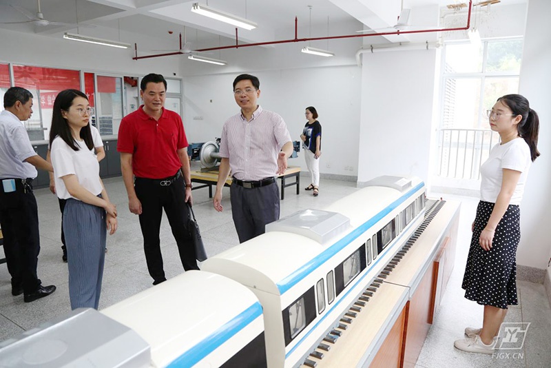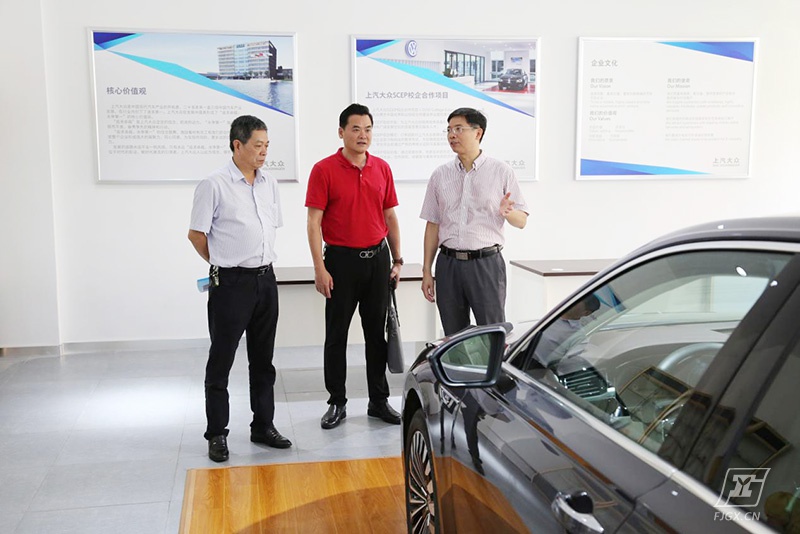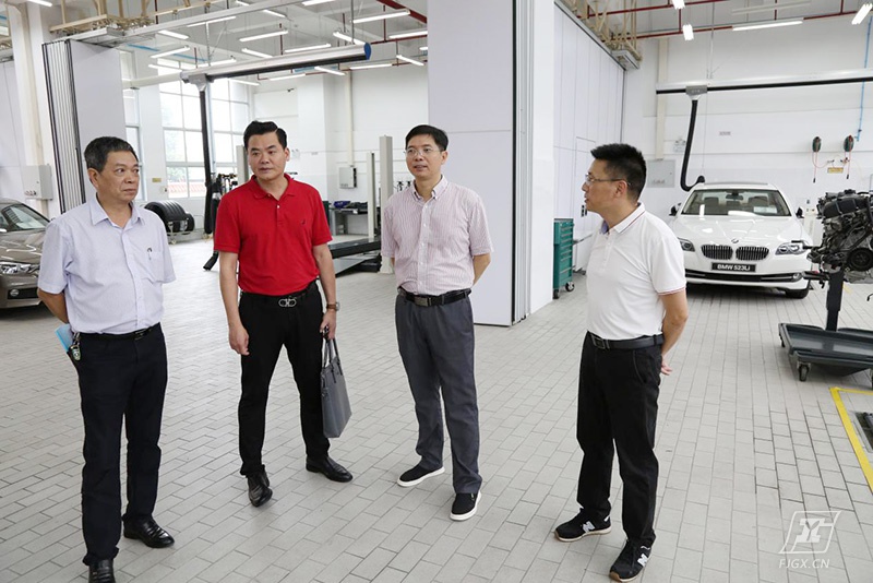 在林俊标校长和杨尊东副校长的陪同下,赵为船校长一行参观了学校的上汽大众SCEP实训基地、宝马BEST实训基地、城市轨道交通实训基地和信息技术应用中心。