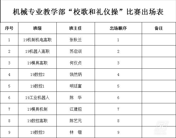 2019级新生军训与养成教育第一阶段即将收官,为丰富同学们的课余生活,检验19级各班礼仪操和校歌学习情况,2019年8月24日上午,机械专业教学部在现代制造实训楼举办“2019级新生礼仪操和校歌合唱比赛”。机械专业教学部副主任张文祥老师、科室学生管理老师和全体19级班级班主任出席本次比赛并担任比赛评委。