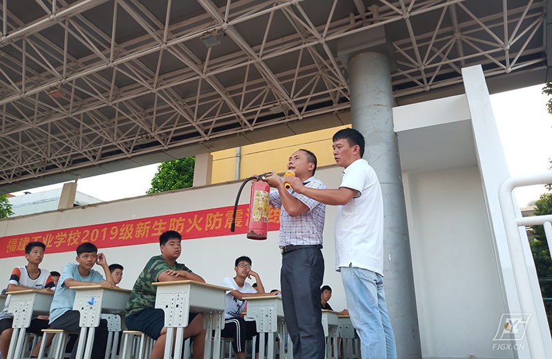 刘灿华老师给同学们演示灭火器的使用方法,首先站在上风口,拉开消防栓,一手按压灭火器的开关,一手握住喷射管对准火焰根部进行喷射,刘灿华老师做了一次生动精彩的示范,使我们增强了防火意识和应急意识。
