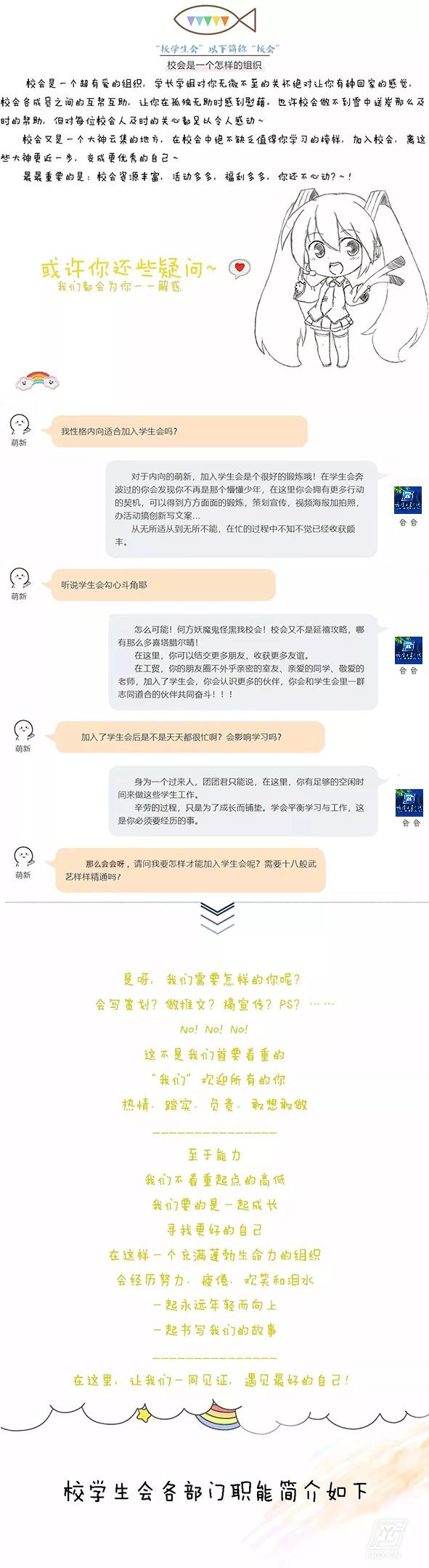 (划重点:以下部门,校团委和各专业教学部团总支的学生会都有设置,同学们可以选择参加校团委,也可以选择本专业部学生会。校团委将在10月15日中午在校道统一组织纳新,专业部学生会各自安排。)