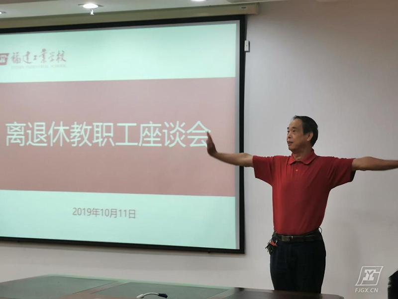 上午10:00,离退休教职工们在难得相聚的欢乐气氛中乘坐电梯前往综合大楼十楼第一会议室与校领导班子进行座谈。会议由校工会主席余梅英副校长主持,她首先对离退休教职工致以节日的问候,并对大家精神矍铄的良好状态表示欣喜。接着,林俊标校长向离退休教职工们汇报了学校发展近况,由学生人数增多带来的一系列挑战都在全校教职工齐心协力、发挥集体智慧之下一一破解攻克。座谈会上,离退休教职工们欣赏了工校校歌《追风破浪万里疆》,以及新鲜出炉的“庆祝祖国70华诞”师生活动的航拍视频,大家纷纷表示切身感受到学校的蓬勃朝气和大步向前的良好态势,对此倍感欣慰。