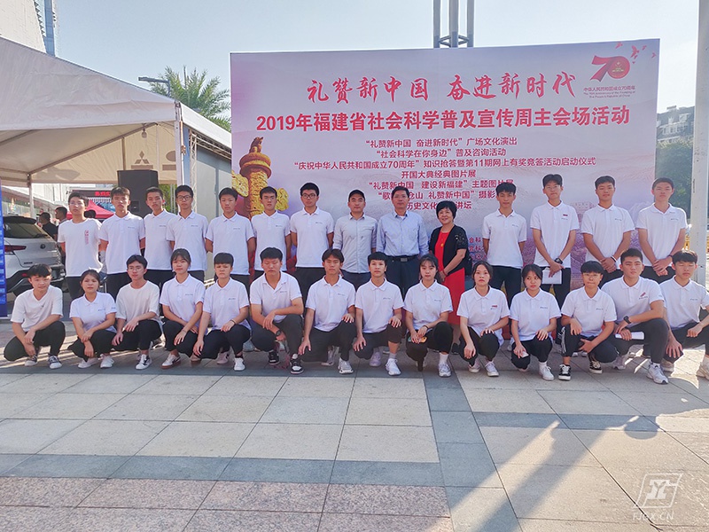 2019年10月19日上午,由省委宣传部、省社会科学界联合会联合主办的,“礼赞新中国 奋进新时代”2019年福建省社会科学普及宣传周主会场,在福州仓山万达广场举行。应社科联邀请,我校林俊标校长亲自带队,程容娟老师、王国鹏老师、梁弘毅老师、陈龙老师和来自各个专业教学部学生代表一行28人前往主会场参展。