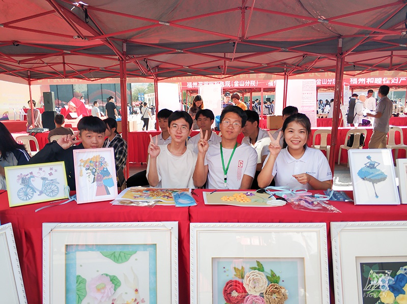 在活动现场,我校经贸教学部展示了嵌入式营销创新创业项目——衍纸画。摊位上摆放了几十幅学生日常的优秀作品,还有4位同学现在演示制作工艺过程,吸引了许多参加活动的师生们驻足观赏。