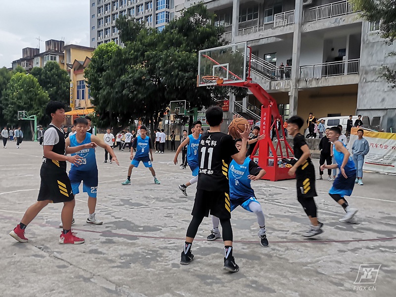 比赛开始前,两个专业教学部的啦啦队已经把看台挤满了。两支个队伍整装待发,做着赛前热身。运动员们他们充满信心,抱着必胜的决心准备拿下这场比赛。比赛正式开始!只见裁判将球抛向空中,双方争球的队员起跳,他们似一头猛虎,谁也不让着谁,一齐向空中跃去。电气率先抢到球,全场一阵欢呼,这一跳,使出他们全身的力气,也将同学们的激情点燃!