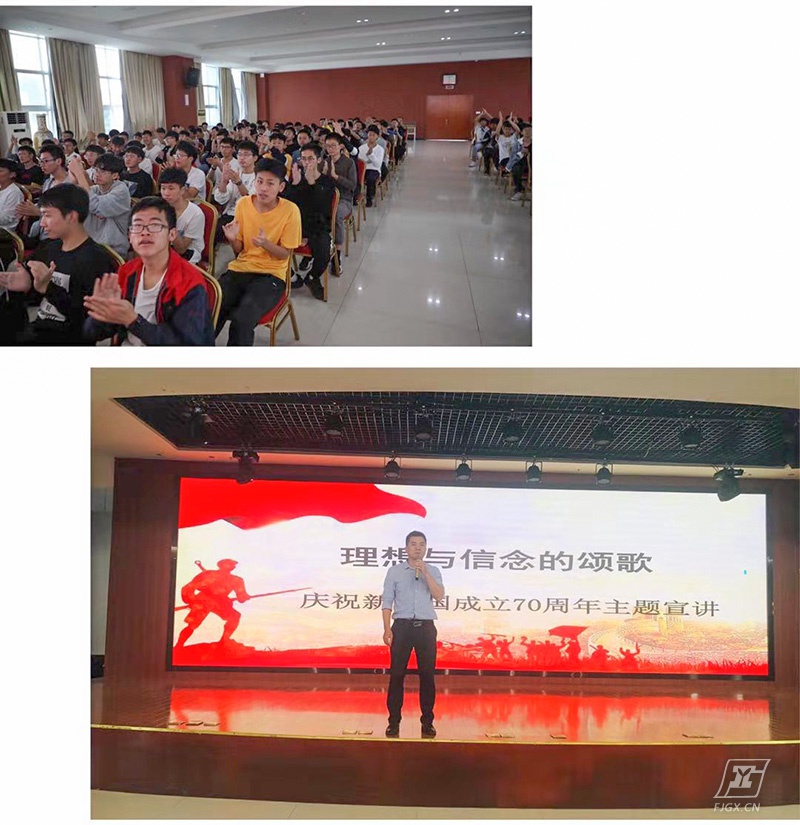 值此新中国成立70周年之际,为了弘扬爱国主义教育,激发全校师生们的爱国热情,11月8日下午,机械专业教学部在校综合楼12楼多功能厅开展了以“理想与信念的颂歌”为主题的爱国教育宣讲活动。