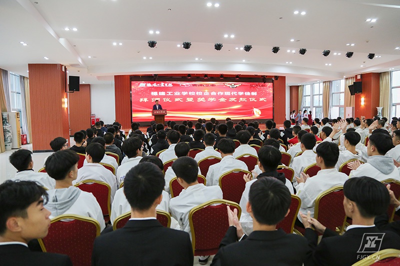 仪式上,林俊标校长、江佾达副部长、陈正芳女士、陈飞鸿总经理分别致辞。根据仪式流程,先是举行专班授牌仪式,其次举行了华体会在线平台与东南(福建)汽车工业有限公司、蜂行者汽车服务有限公司、福建省乐道汽车服务有限公司现代学徒制班拜师仪式,最后由东南(福建)汽车工业有限公司为18级东南专班,蜂行者为18级蜂行者专班颁发奖学金仪式。
