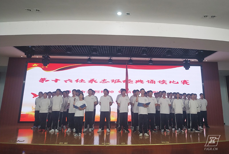音乐响起,承志班诵读比赛正式开始。他们穿着整齐统一的着装,满怀自信地登上了台。每个班的同学精神饱满,情感随着诵读经典尽情萌发,个性随着传承文明尽情张扬。