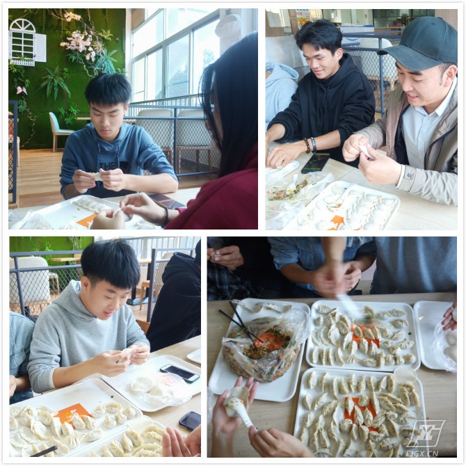 大家包饺子的动作从笨拙到娴熟,饺子的包法不同,形态不同,老师、同学们一边包饺子,一边聊天,脸上洋溢着笑容。师生齐动手,在这一过程中大家逐渐打成一片,他们将欢乐和幸福包进水饺,将交流和友谊融进水饺,场面十分温暖热闹。