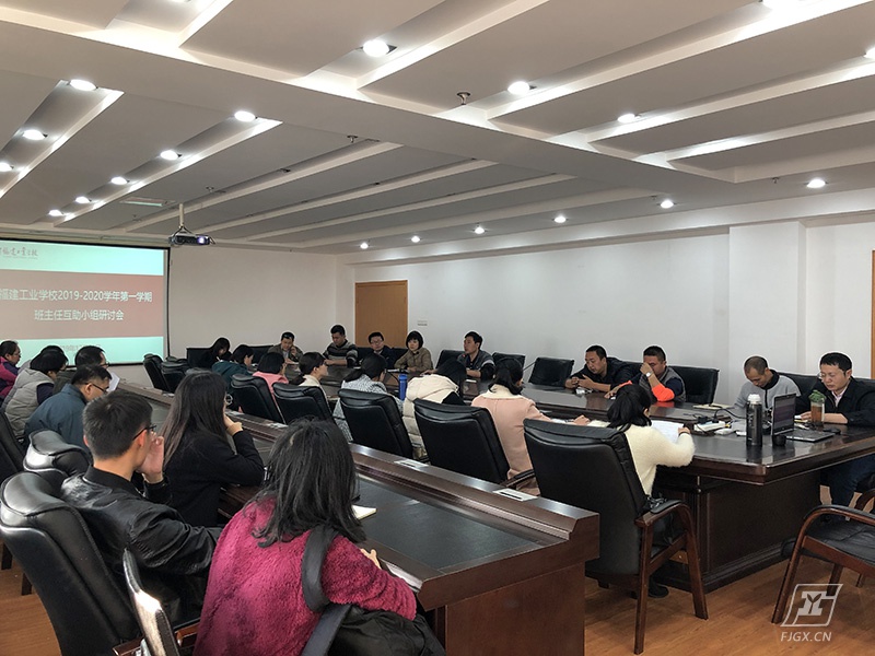2019年12月27日下午,学生与保卫科李旭东科长、5名专业教学部学生管理副科长和32名班主任齐聚综合楼10楼会议室,共同参与学校2019-2020学年第一学期班主任互助小组研讨会。