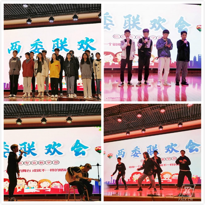 节目中,女生部青春活力的《一笑倾城》,劳动部轻松活泼的《粉红色的回忆》,体育部炸翻全场的舞蹈表演,还有宣传部依依不舍的《遇见》,纪检部让人陷入回忆的《时间煮雨》。各部门的两委们用动听的歌声和活力四射的舞蹈为联欢会增添了活跃的气氛。