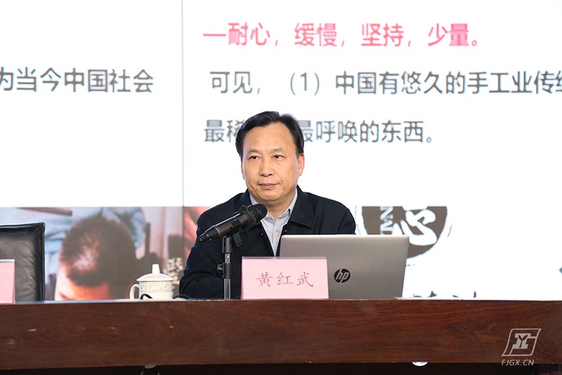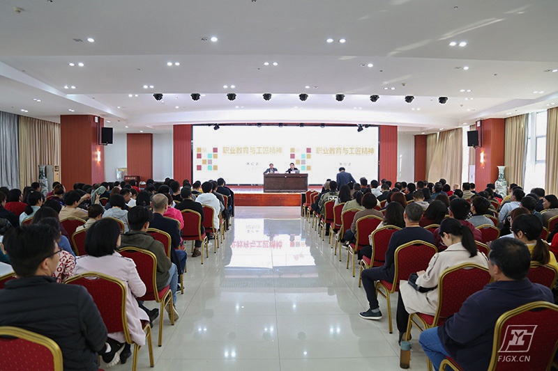 黄红武教授作了题为“职业教育与工匠精神”的专题讲座。他首先肯定了我校在产教融合、专业建设、教书育人等方面所取得的突出成就,高度评价学校为“金玉其外,内秀其中”,在同类学校中首屈一指。随后,他结合自身经历,简要介绍了工匠精神的定义、特质和新时代的“工匠精神”,从经济原因和文化原因详细分析了当代中国为何缺少“工匠精神”,并提出在办学治校中践行“工匠精神”根在制度,贵在模式,重在教师的独到见解。