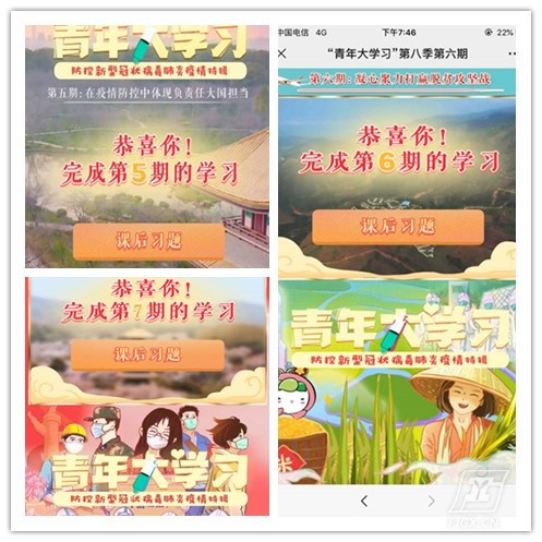 近几期“青年大学习”网上主题团课学习了“凝心聚力打赢脱贫攻坚战”、“新时代中国青年是好样的”等主题,通过全方位的学习帮助广大团员青年树立了为人民服务、为国家奋斗的理想信念。目前,团课已开展到第八季第七期,每期课程包含签到、辅导视频、随堂测试、延伸阅读等模块,便于团员青年学习理解。