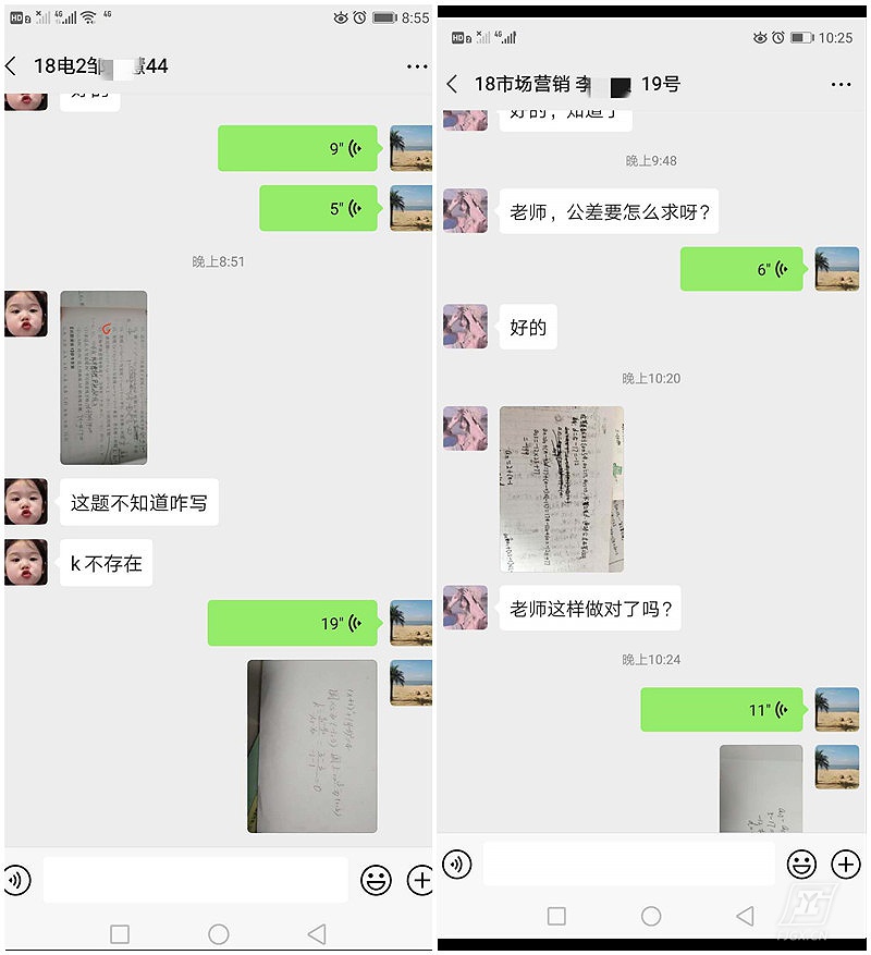 学生通过微信可以向老师提问,我会在最短时间为学生解答,这不仅缩短了师生之间的距离,而且提高了学习和交流的效果。