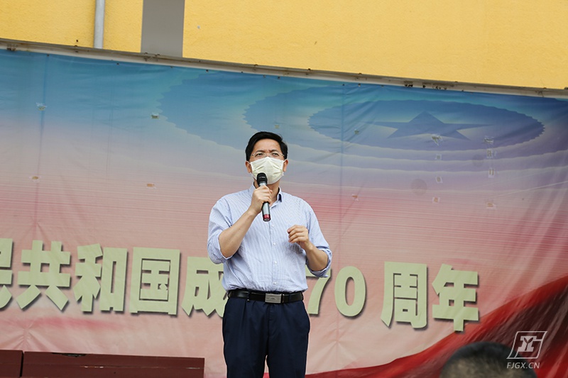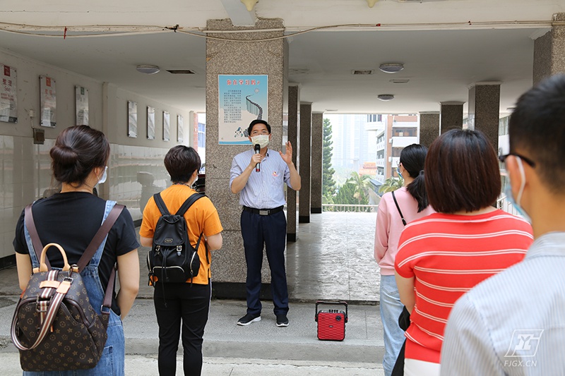 9点10分,全体参加演练的教职工在田径场集合,听取林俊标校长的指示。他强调了本次演练的重要性,希望参与的教职工们统一思想,高度重视,按照实现分配的角色和任务,通过演练活动学会校园疫情防控的各项应急处理流程。