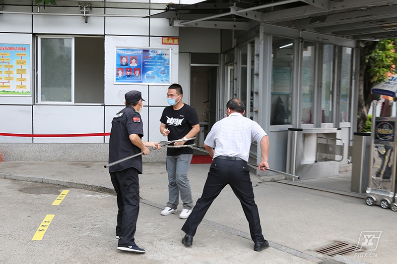 疫情防控期间,保卫部门保持高度警惕,严格管理校门口,防止无关人员进校。演练中,一名校外人员不配合管理,强行闯入,保安迅速将其控制到总值班室。保卫科长马上上报分管领导,并及时联系片区民警,将其带走。
