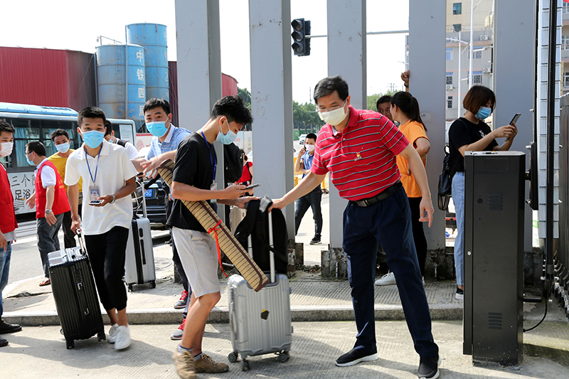 为确保学生安全顺利报到,学校发出倡议书,号召全体教职工党员投身学生返校服务,组成党员教师志愿先锋队,提供咨询、维护秩序、提行李等全方位配套服务,确保每一位学生都顺利返校,成为学生返校报到现场一道亮丽的风景线。