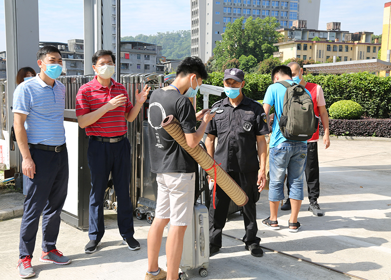 按照上级部门关于做好2020年春季学期学生返校复学工作的部署要求,我校经过多次防疫培训、实战演练的准备,安排学生分二批错峰有序返校。5月24日,迎来了2020春季学期首批返校学生。林俊标校长、余梅英副校长、杨尊东副校长、叶扬副校长、中层干部、教职工党员、学生口人员分别到返校工作接待点迎接和看望返校学生。