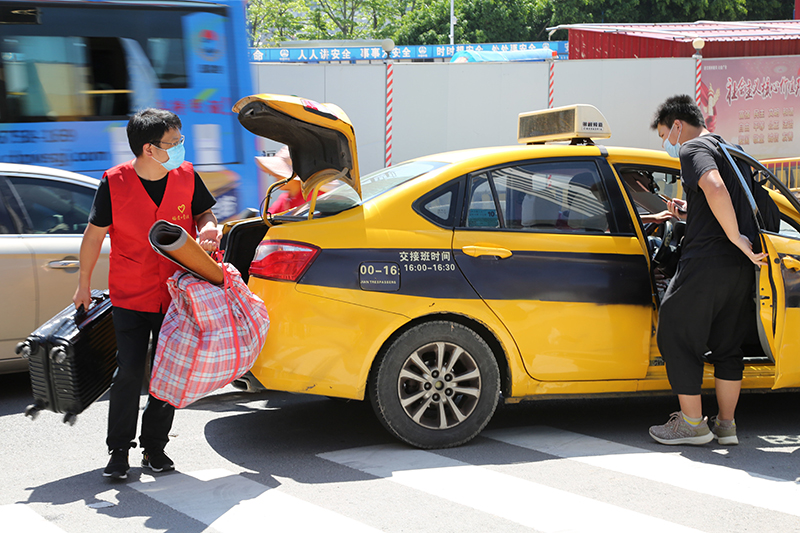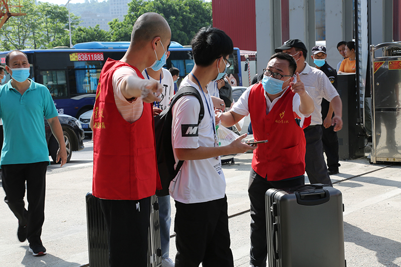 学校在南北动车站分别设置报到点,“点对点、一对一”迎接学生。