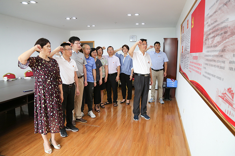 第一阶段,全体与会同志佩戴党徽,目光坚定、神情肃穆,在林俊标书记的带领下,在鲜红的党旗下,重温入党誓词。一段入党誓词,一次初心不忘,再现了党员们入党时的铁骨铮铮。