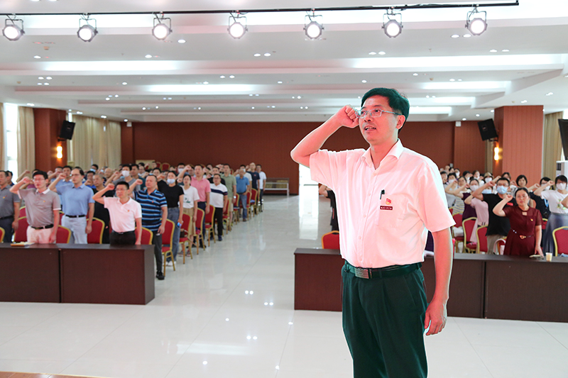 在校党委书记、校长林俊标同志的领誓下,全体党员同志面向党旗,高举右手,紧握拳头,庄严宣誓,重温入党誓词,坚定如磐初心,践行使命担当。