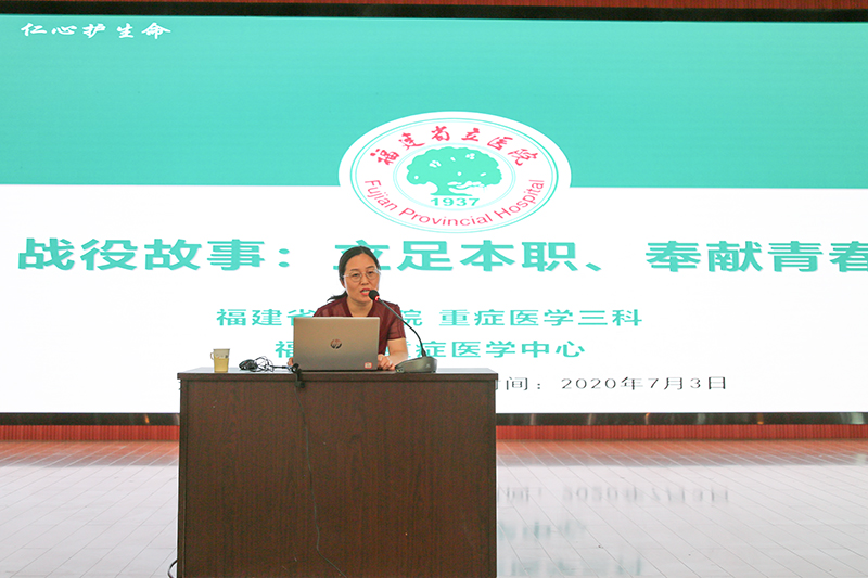 宣誓仪式结束后,我校特别邀请援鄂抗疫医护英雄、福建省立医院重症医学三科副主任医师、医学博士尚秀玲同志为全体党员上了一次题为《战役故事:立足本职,奉献青春》的党课。
