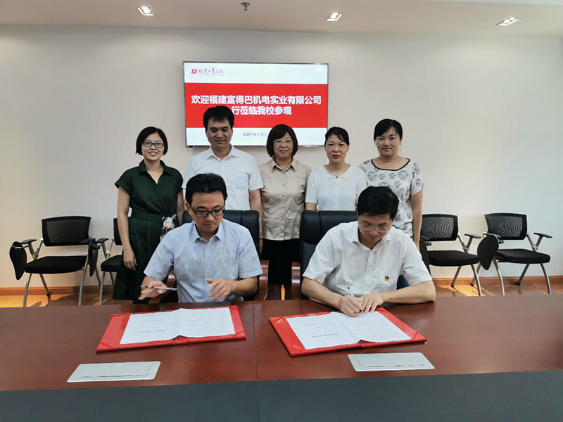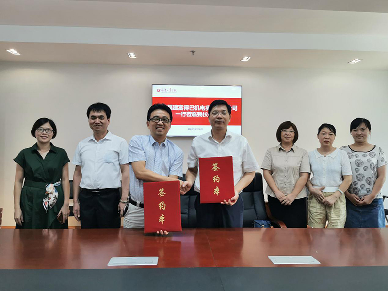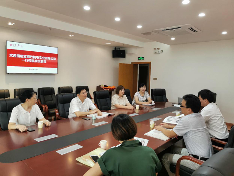 8月12日上午,福建富得巴机电实业有限公司董事长林本栋、副总经理曾章云、总经理助理兼管理部经理薛晶晶一行3人莅临我校开展机械制造技术专业定培专班人才培养研讨暨校企合作共育技能人才签约仪式。