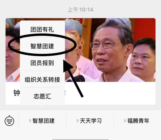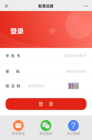 第二步:进入主页,点击下方菜单栏“智慧团建”,进入登录页面,输入账号密码即可进入智慧团建微官网平台;