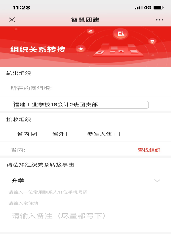 团支书也可在微信公众号“智慧团建-组织关系接转”中为团支部中的团员发起关系转接申请。