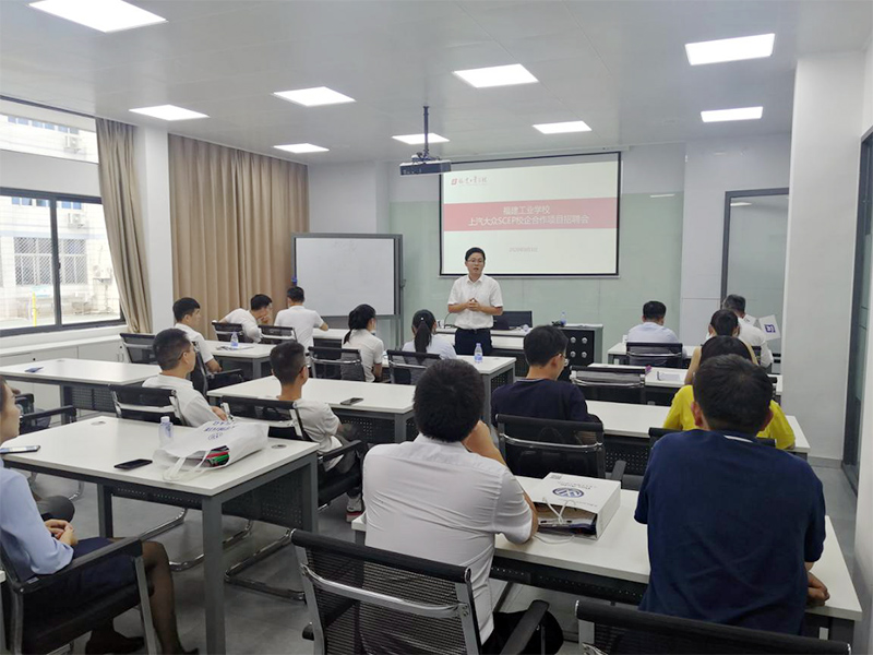 招聘会前,经销商经理们共同了观看我校校歌和上汽大众开业仪式的MV,随后我校上汽大众培训师向他们简要介绍了学校发展和汽车专业建设情况,并详细说明了上汽大众SCEP校企合作各项活动开展情况和所获成果,重点讲解了上汽大众项目班的学制安排、培养模式和课程教学。