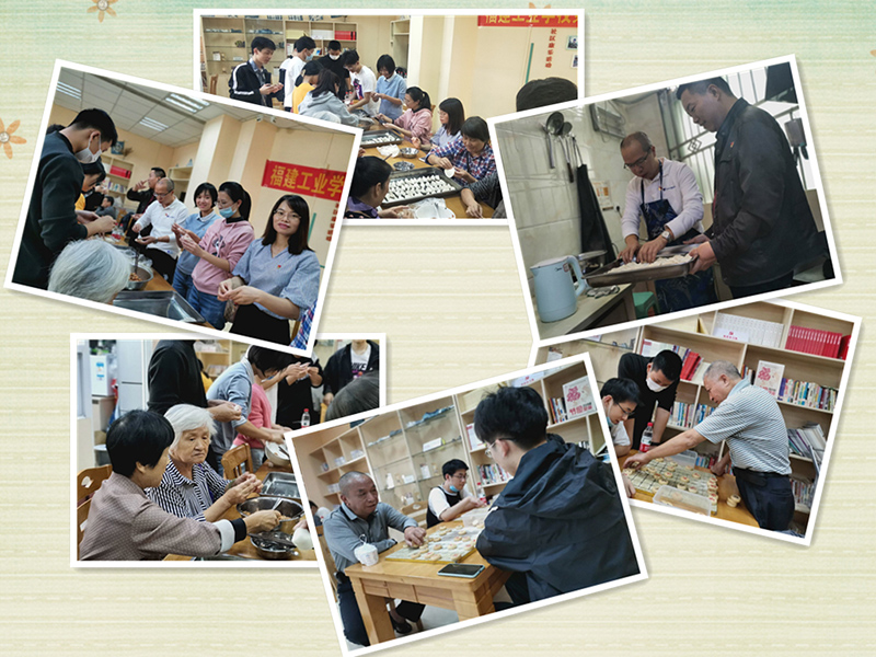 饺子行如元宝,寄托着人们对美好生活的期望。今天的重头戏就是包饺子。到了社区后,师生们摆开阵势,做准备工作,有的切菜,有揉面,有的拌馅儿,有的摆桌。社区里有几位老阿姨经验丰富,速度很快,你一个,我一个,不一会儿就包好了一大盘饺子。大家一边包着饺子,一边聊着天,现场欢声笑语,其乐融融。