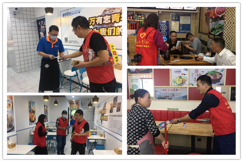待共享单车全部摆放整齐后,党员志愿者们向餐饮服务经营者和消费者发放“制止餐饮浪费,培养节约习惯”倡议书,张贴抵制餐饮浪费宣传资料,宣传“珍惜食品、适量点餐、剩餐打包、光盘行动”的消费理念。